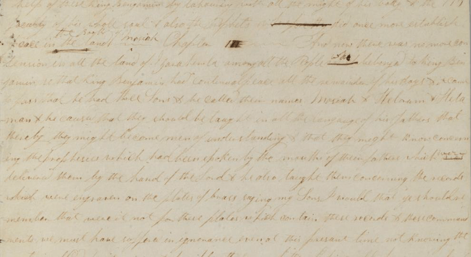 WoM is not a named book in Mormon’s work. It appears to be both an introduction to the small plates (1-11) as well as a transition between the small plates and king Benjamin’s reign (12-18). Curiously, Oliver Cowdery originally had this ‘book’ as Omni II and our first book of Mosiah as Mosiah 3. It’s also unclear where these words were written—on the small plates themselves? Amaleki said those plates were full, but perhaps there was just enough room for Mormon’s inscription. Or were they written separately somewhere? The last two decades of research as part of the Joseph Smith Papers Project helps us out here, and the following is our best guess at what happened: